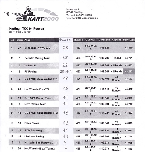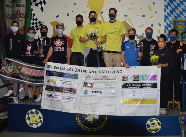 Fazit: Mal wieder Regen, mit 22 Teams wieder „full house“, nur zwei Strafen, nur zwei kleineren Defekten, einigen verloren gegangenen Transpondern, einer souveränen und professionellen Bahn Crew, wie immer tollem Service/Essen im Bistro, 90% des Tages heißen und sommerlichen Temperaturen, Gesichtsmasken in allen Variationen, guten Karts, mit Scharmüller/WnG A/D erneut der gleiche Sieger, das Team PF Racing entführt beide Sonderpunkte, Blitzeinschlägen unweit der Kartbahn, einem Wolkenbruch ca. 45 min vor Schluss, dennoch guter Stimmung, glückliche Gewinner der Pokale wie den Bierfässle, einer sehr fairen Veranstaltung, disziplinierter Einhaltung alle Corona Bestimmungen usw.