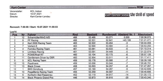 Sich 20 Minuten vor Schluss auf Rang drei gekämpft haben sich sie „Comebackler“ vom Team Kart 2000 Racing Eiselfing. Somit war das Samstag Podest komplett. Die weiteren Platzierung findet ihr unten im Anhang.