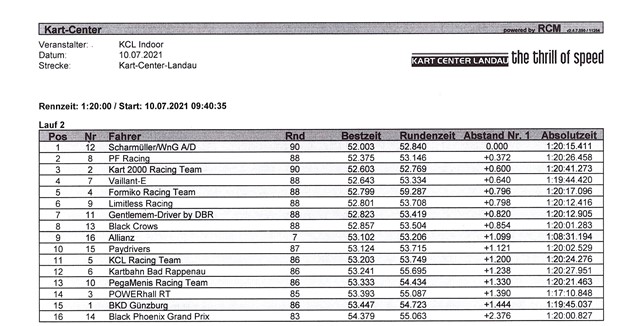 - KCL Racing Team, welche in einer neuen Konstellation, unter der Regie von Jürgen Dietrich die Flagge der Kartbahn Landau vertritt.