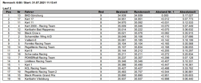 Gut eingestellte Karts und ein ausgeglichenes/starkes Starterfeld machten dies möglich.