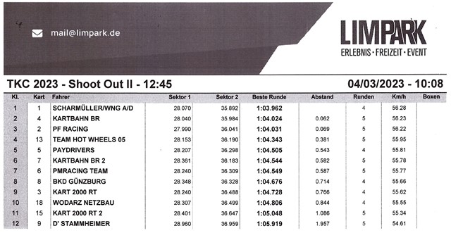 Ein super Saisonauftakt liegt hinter uns, danke an alle beteiligten Fahrer/Teams für dieses super, faire und spannende Rennen sowie an den „Limpark“ in Limburg für einmal mehr super Karts und einer super Crew.