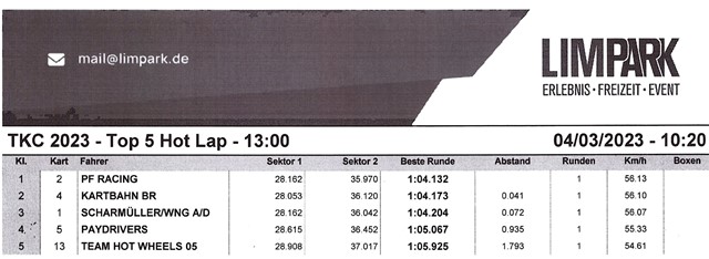 Platz vier mit einer Teambestzeit von 1:03.038 und drei Runden Rückstand auf den Sieger, das Team der Kartbahn Bad Rappenau 1.