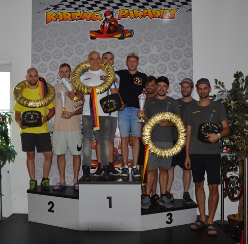 Eiselfing Podest: P 2 = Scharmüller/WnG A/D, P 1 = PF Racing, P 3 = Kart 2000 Racing Team