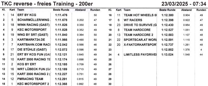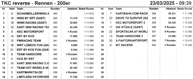 Fazit: Super TKC Raceweekend Auftakt 2025, 47 startende Teams, Samstag Bilderbuch Wetter/Sonntag eher so „naja“, starke Gastteams aus Polen, Österreich und Deutschland, vier Kartdefekten, kaum Gelblichphasen, 2 Zeitstrafen (einmal 500 Gramm Untergewicht, einmal Abschuss eines Gegners 5 min vor Schluss), gut vorbereiteten Karts mit 11 Ps Motoren, einer TOP Streckencrew, spannenden Zweikämpfen bis zum Schluss, Entscheidungen die so im Reglement verankert wurden, Neueinsteiger Teams/Comeback Teams/neu formierte Teams die super performten, tolle Stimmung, hässlichen gelben T-Shirts, einem dicken Knöchel, leider drei kurzfristigen Absagen, lecker gegrilltes, einem stark mitfahrendem Geschäftsführer, super guten Nachwuchsfahrern usw.