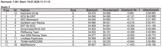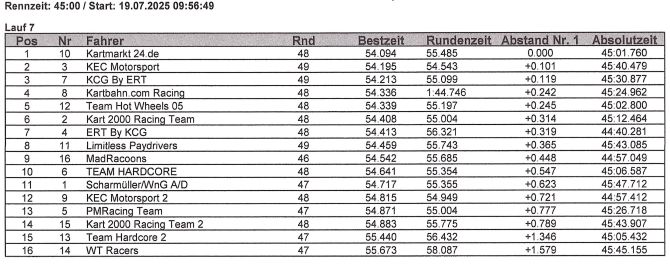 Die Performance der Karts, war an diesem Renntag – je nach Startnummer – leicht unterschiedlich. So profitierten heute die Startnummern um die Nummer 10 herum in Reihe von gute laufenden Karts, aber hey… auch mit diesen Karts muss erst gefahren sein.