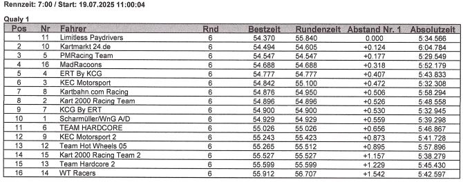 Qualy 1 mit allen 16 Teams