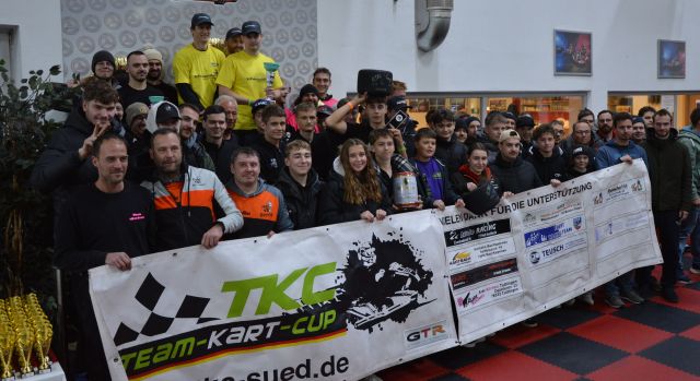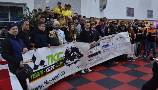 Alle 14 TKC Stammteams mit ihren Pokalen, Geschenken und Auszeichnungen