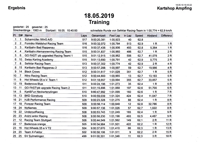 Dieses entschied das Team Kartbahn Bad Rappenau für sich gefolgt von Scharmüller/WnG A/D und dem Team Swiss Karting Academy.